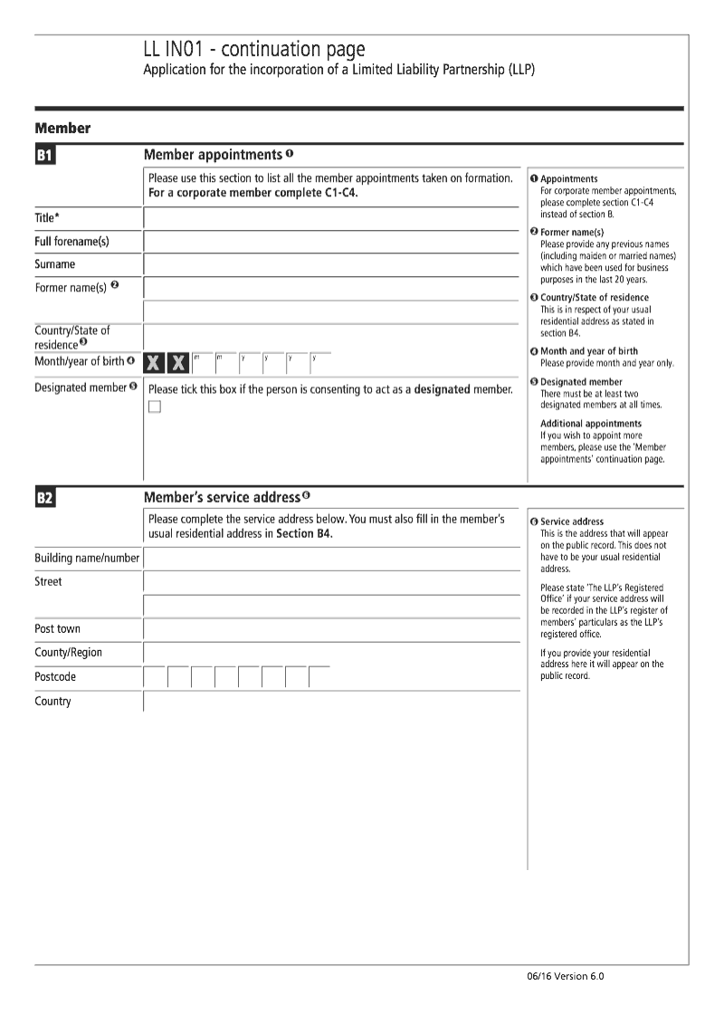 The page contains a new version of the ll in01 thatll only be valid from 30 june 2016. Only use the continuation pages you need. Register a uk establishment of an overseas company os in01.