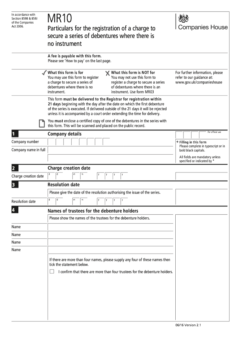 Form mr01 can also be completed and filed online using the webfiling service or the software filing service at companies house. 3182013 105100 am company. You can register charges against a company using these details.