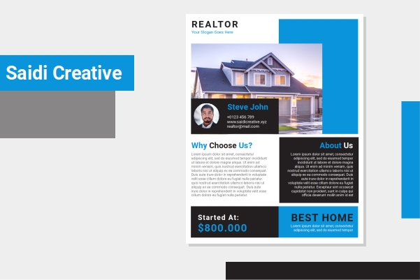 Get this fully customizable real estate flyer template to create amazingly vibrant and attention grabbing flyers for your sales. Available in us 85x11 inches bleed.